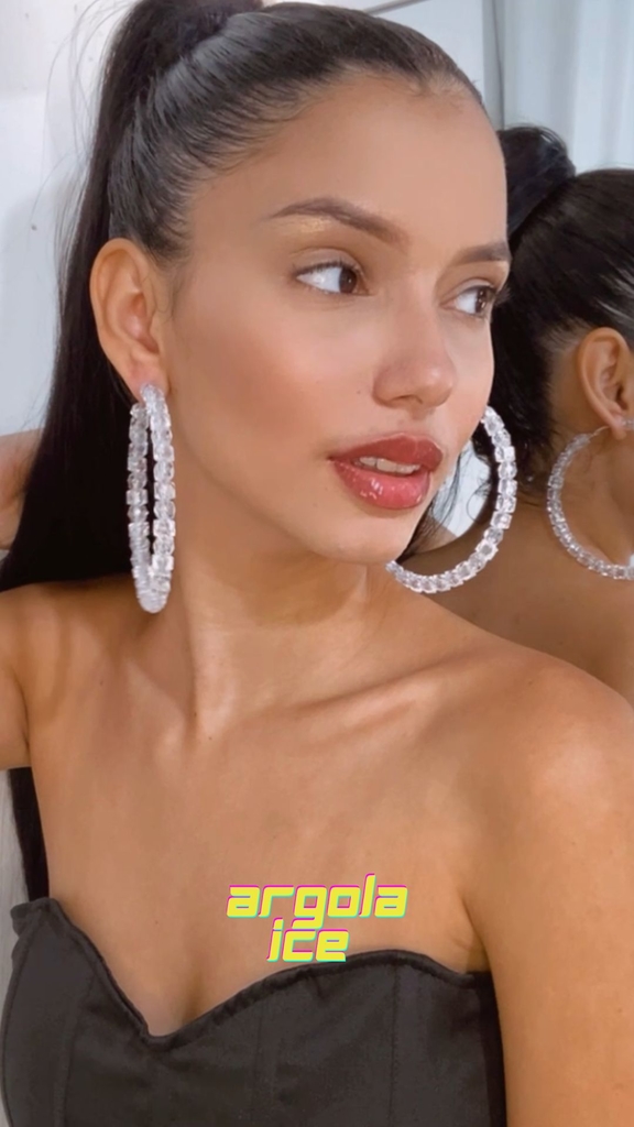 Base da argola em aço, personalizada com miçangas em cubos. Tamanho M mede 9x9cm e tamanho G 10x10cm.